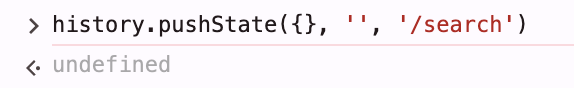 위에서 언급한 history의 주요 메서드 중 go, back, forward는 popstate 이벤트를 일으키지만 pushState, replaceState는 popstate를 일으키지 않는다. 때문에 pushState를 호출했을 때 url이 바뀌는 것은 보여도 화면에는 아무런 변화가 발생하지 않는다. 개발자 콘솔에서도 간단하게 테스트가 가능한데, 네이버 홈 화면을 띄운 상태에서 개발자 콘솔에 history.pushState를 호출한 경우, URL이 /search로 변경된 것을 확인할 수 있다. 반면에 화면은 네이버 홈 화면에서 아무 변화가 일어나지 않는다.