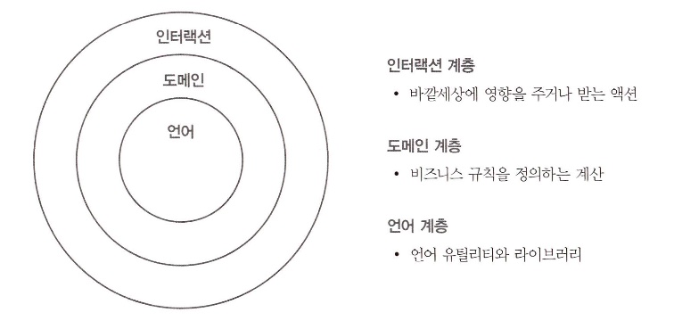 - 계층에서 호출하는 방향은 중심 방향이다. (인터랙션 -> 도메인 -> 언어)
